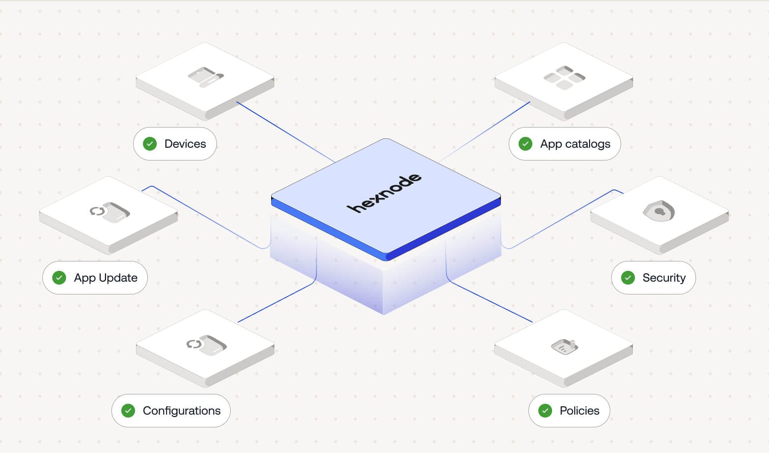 Group multiple applications into a single deployable package. Hexnode lets you build team- or role-based bundles so essential tools are installed together consistently.